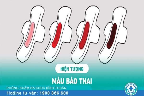 Máu báo thai có màu hồng nhạt, đỏ tươi hoặc màu đỏ nâu. Máu rất loãng và chỉ chảy nhỏ giọt, tạo thành vệt hoặc các đốm nhỏ li ti. Đôi khi máu chảy ít đến mức không dính ra quần trong nhưng sẽ xuất hiện khi dùng giấy lau.