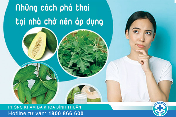 Khi có ý định phá thai, thai phụ KHÔNG được tự ý phá thai ở nhà bằng các phương pháp tự nhiên hay tự ý mua thuốc về nhà uống, mà thai phụ nên đến các cơ uy tín để thăm khám, siêu âm, kiểm tra sức khỏe thai phụ và lựa cách phương pháp phá thai phù hợp. Hiện nay Phòng Khám Phá Thai Bình Thuận đã và đang áp dụng các phương pháp phá thai an toàn, không gây đau như: